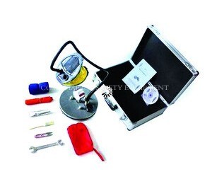 إنها مصنوعة من مشبك محكم الإغلاق، ومضخة نفخ يدوية، ومقياس ضغط، وحقيبة أدوات إصلاح